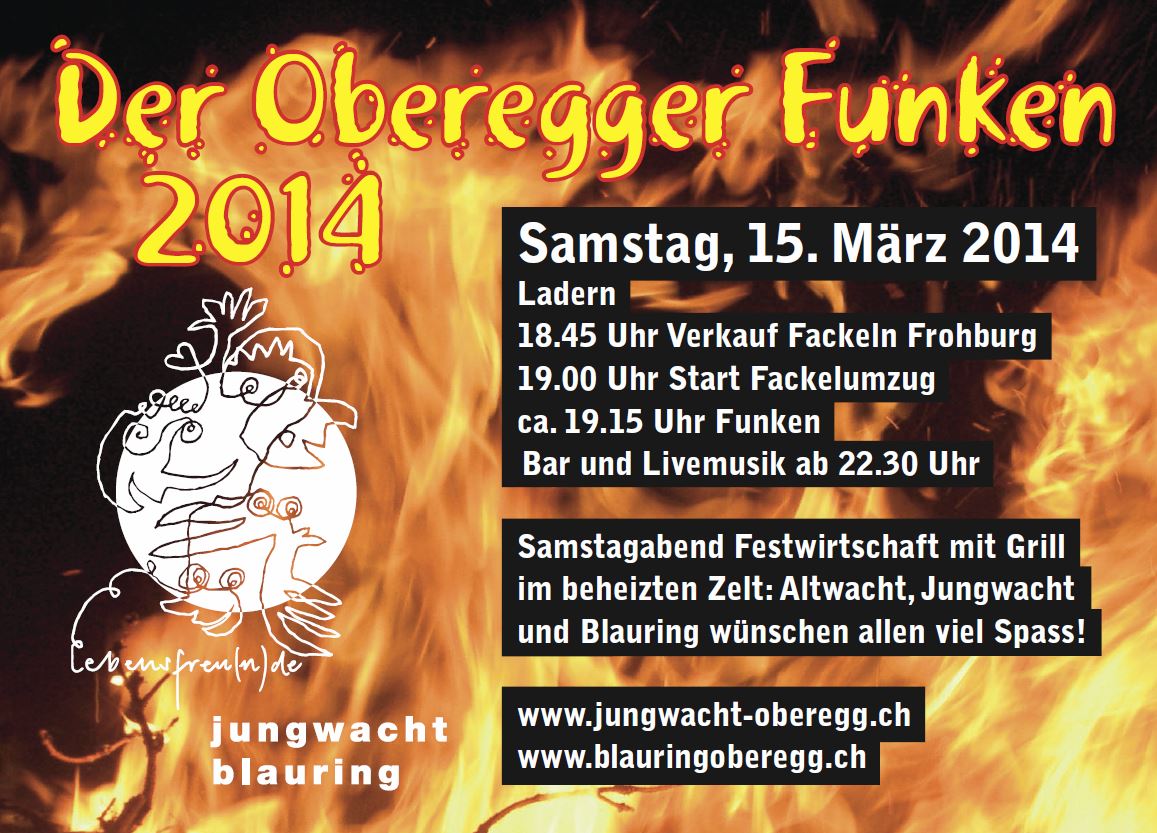 Altwacht, Jungwacht & Blauring werden am Samstagabend eine beheizte Festwirtschaft mit Grill beim Funken betreiben. Ebenfalls gibt es wieder einen Barbetrieb. Kinder, Jugendliche und Erwachsene sind herzlich willkommen. Der Besuch lohnt sich!